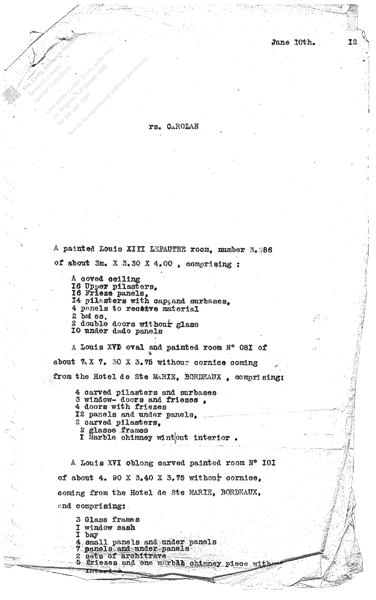 These two rooms were designed in 1784 by the noted architect Victor Louis as central elements in a beautiful mansion that is still standing in Bordeaux, France. In 1912, after that building had been turned into a school, the rooms were removed and offered for sale for $50,000, or over one million in today’s dollars. The exquisite carving of the boiseries and that of the original marble mantles was noted by curators in France who studied and published them. Mrs. Carolan was advised in this major purchase by the famous antique dealer Boni de Castellane. She made the decision to buy the rooms before the house was designed, so in effect the house was planned by Sanson to accommodate these important rooms and respect their proportions and arrangement from the 18th century.